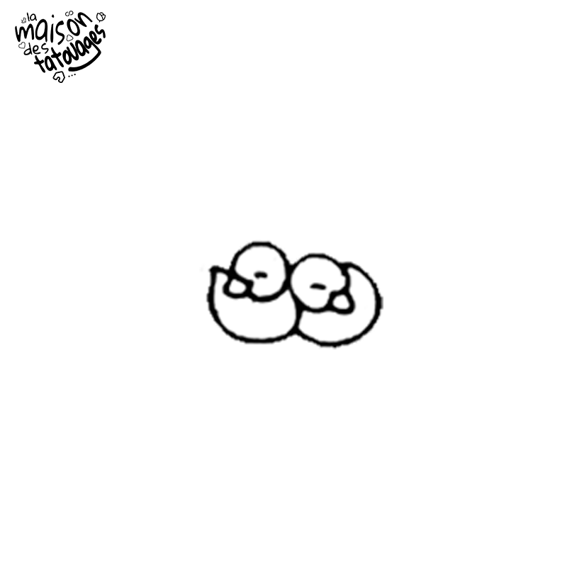 Ce tatouage éphémère représente deux canards, dessinés de manière délicate et détaillée. Les oiseaux sont représentés dans une posture fluide, capturant la grâce naturelle de leur mouvement. Le design, à la fois minimaliste et raffiné, met en valeur les courbes douces des canards, créant une image apaisante et élégante. Les traits fins et précis du dessin accentuent la texture des plumes et la silhouette des canards, ajoutant une touche de réalisme tout en restant dans une simplicité pure. Ce tatouage symbolise la liberté, la paix et la beauté des animaux, offrant un motif subtil et raffiné pour ceux qui recherchent une connexion avec la nature tout en exprimant leur sensibilité.