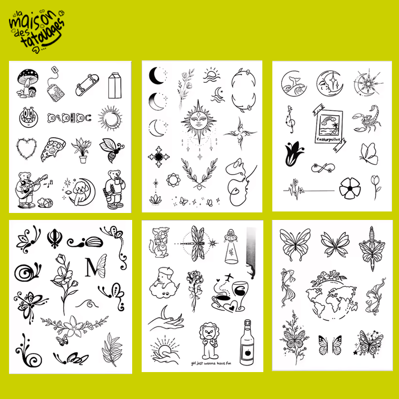 Avec leurs designs fins et élégants, ces tatouages temporaires sont parfaits pour ajouter une touche de poésie et de mystère à votre peau, tout en évoluant subtilement au fil des jours.